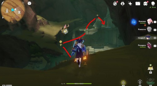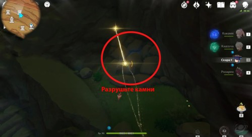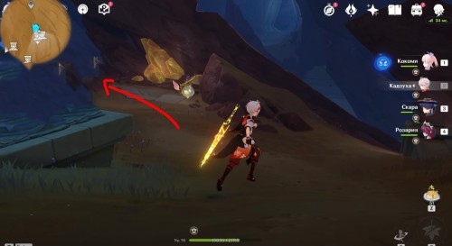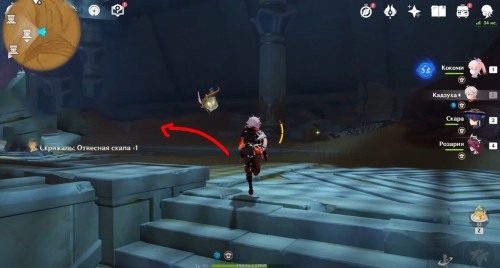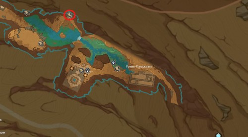 От телепорта в указанной области пройдите далеко на юг и найдите древнюю плиту рядом с лагерем хиличурлов.