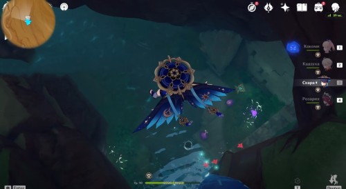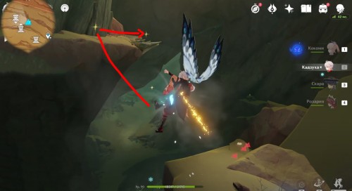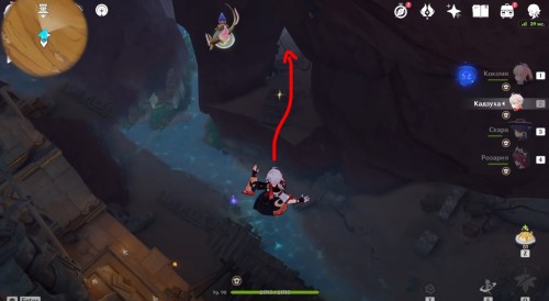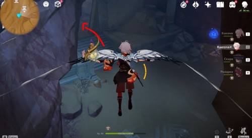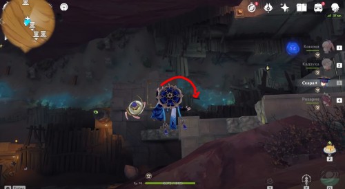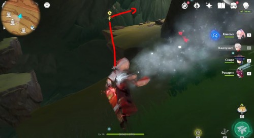 Найдя прошлую скрижаль, развернитесь и воспользуйтесь четырехлистником, чтобы попасть на край обрыва. Затем сразу же спрыгните вниз к водоему. Возле стены на небольшом выступе вы найдете нужный предмет.