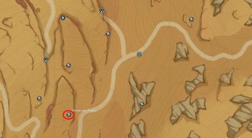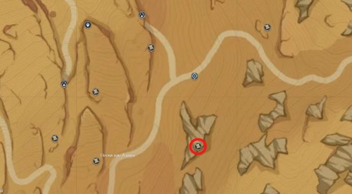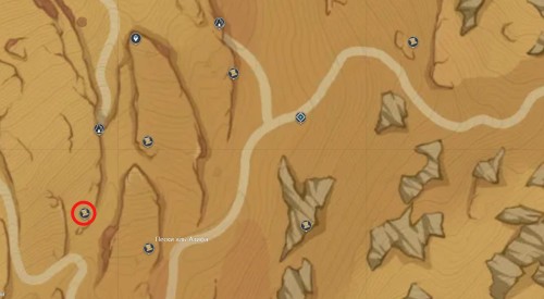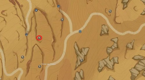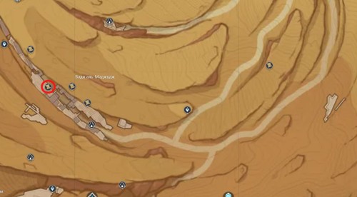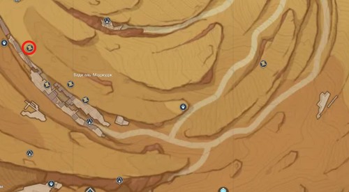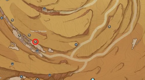 Переместитесь к восточному телепорту в Вади аль-Маджудж, а затем двигайтесь на северо-восток и отыщите плиту среди камней у подножья скалы. Рядом расположен сундук с сокровищами.