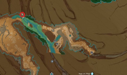 Переместитесь к восточному телепорту в Вади аль-Маджудж, а затем двигайтесь на северо-восток и поднимитесь на возвышенность. Вам потребуется использовать джинна, чтобы попасть в нужную область.