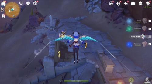 Переместитесь к западной телепортационной точке указанной области, а затем спрыгните с обрыва и спланируйте вправо. Среди руин на земле вы обнаружите второй монумент. На гифке ниже показан полный маршрут.