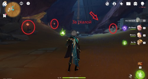 Рядом с подземным телепортом можно обнаружить три заблокированных Дендро монумента, причем один из них будет спрятан за грудой камней. Чтобы активировать их, вам для начала придется расправиться с группой противников. Подробное решение головоломки представлено в нашем отдельном материале. За разгадывание загадки вы получите богатый сундук.