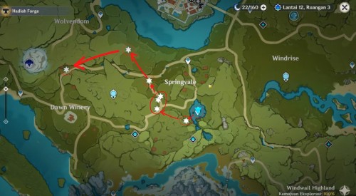 Переместитесь к указанному телепорту, а затем бегите на северо-запад. По пути вы обнаружите каменистый выступ с множеством залежей железа. Продолжайте бежать на юг к ущелью. Пройдите его по кругу, чтобы собрать все месторождения руды. Приготовьтесь к долгим лазаниям по скалам.