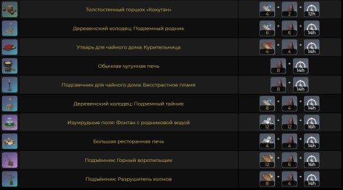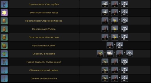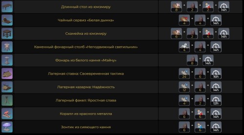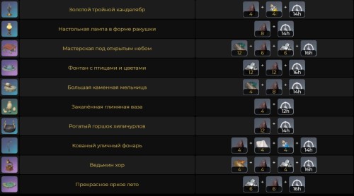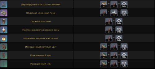 Данная руда используется для создания огромного количества самых различных предметов мебели и декора, которые можно разместить в своей обители. На картинках ниже указаны все изделия.