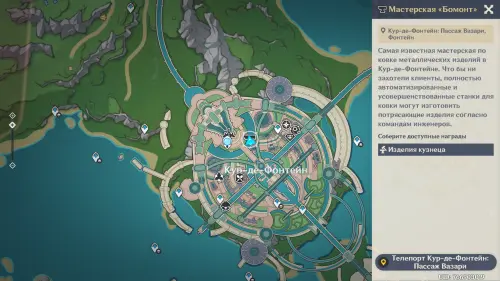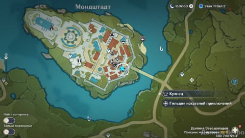 После этого на карте будет отображено несколько месторождений руды (обычно они возникают рядом с аномалиями артерий земли). На скриншотах выше показано местоположение четырех кузнецов, у которых можно спросить о расположении руды в разных регионах: Вагнер (Мондштадт), Мастер Чжан (Ли Юэ), Хадзимэ (Инадзума) и Ахангар (Сумеру). Обращаться к ним можно каждый день после сброса сервера.