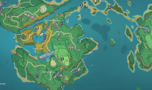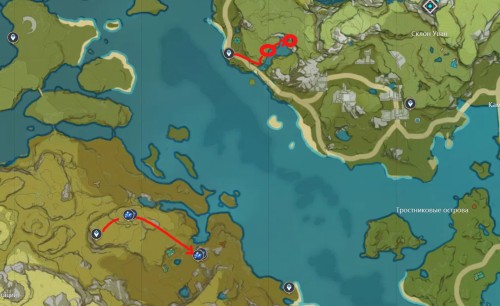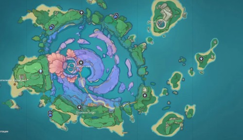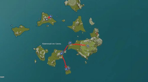 Как и прежде, необходимо ориентироваться на аномалии артерий земли при поиске месторождений. Если они находятся на том же острове, на который указали NPC, то есть смысл осмотреть все точки спавна руды. На скриншотах выше мы указали возможное расположение залежей на всех островах Инадзумы.