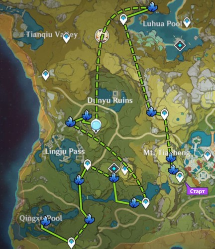 После этого можете осмотреть месторождения возле Долины Тяньцю и Склона Уван. В остальных местах искать магические кристаллы уже не имеет смысла.