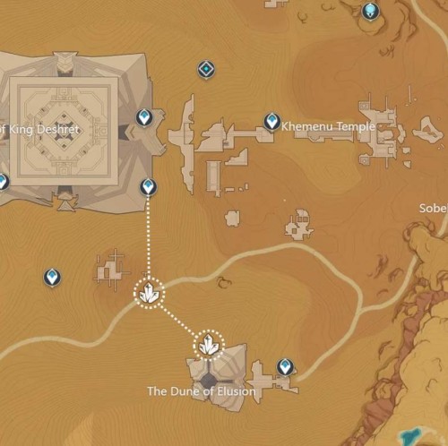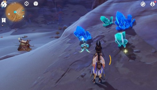 Данный регион является частью Сумеру, поэтому при получении сведений от Ахангара он может указать вам и на пустыню. Советуем вам, перед тем как браться за поиски кристаллов в этой области, пройти квестовую цепочку «Золотая страна грез», чтобы открыть доступ к большинству подземных локаций.