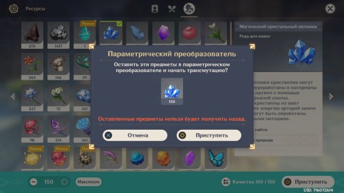 Если у вас накопилось огромное количество магических кристаллов, и вы не планируете использовать их для создания волшебной руды усиления, то можете попробовать трансформировать эту руду в какие-нибудь полезные материалы возвышения, воспользовавшись Параметрическим преобразователем.