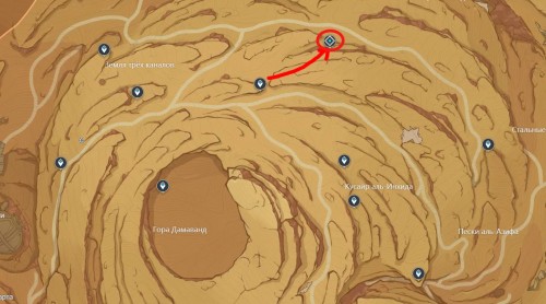 Проход в него находится северо-восточнее горы Дамаванд, расположенной в пустыне Хадрамавет. В теории попасть в эту локацию можно уже после прохождения задания Архонтов «Песнь о драконьей свободе» и достижения 28-го ранга приключений, однако мы советуем вам следовать основной истории и начать поиски хотя бы после миссии «Сны, пустота и обман», в рамках которой вы впервые посетите пустынную местность по сюжету. Доберитесь до телепорта, показанного на карте ниже, а потом продолжайте двигаться на северо-восток.