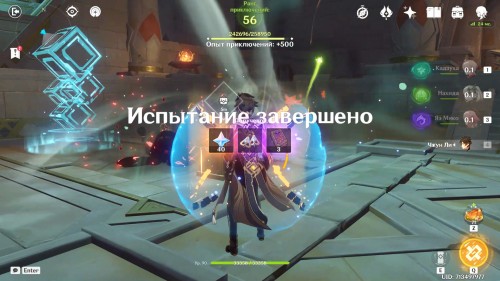 В награду за его прохождение вы получите 40 примогемов, 45 тысячи моры, 5 печатей Дендро, 5 волшебной руды усиления, 3 книги опыта, 2 указания о «Честности» и одну часть сета артефактов «Хроники Чертогов в пустыне».
