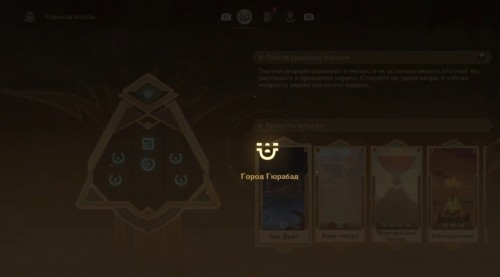После этого сразу же начнется небольшая кат-сцена, в которой вы поговорите с Паймон. У вас также откроется последний символ на Плите красных песков. Откройте инвентарь, перейдите на вкладку «Задание» и выберите соответствующий инструмент. Вы увидите разблокировку знака «Город Гюрабад».
