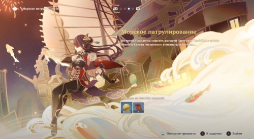 Попав на борт судна, поболтайте с навигатором Хуэй Син и скажите ей, что хотите поучаствовать в морском патрулировании. На этом задание подойдет к концу, а вы получите 10 тысяч моры и 4 опыта искателя приключений. Затем обязательно изучите появившуюся инструкцию.