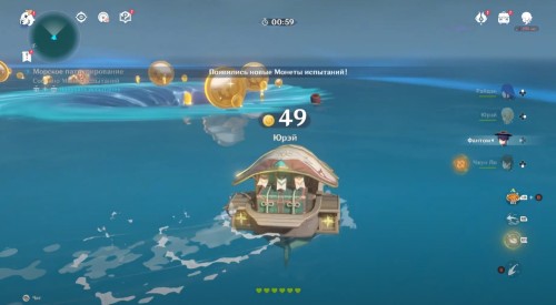 Сразу же после начала испытания постарайтесь поскорее собрать монетки, которые уже будут присутствовать на воде. Уничтожьте также плавающие коробки при помощи пушки корабля (ЛКМ), чтобы на их месте появились супермонеты. Сделать это нужно быстро, так как вскоре область изменится.