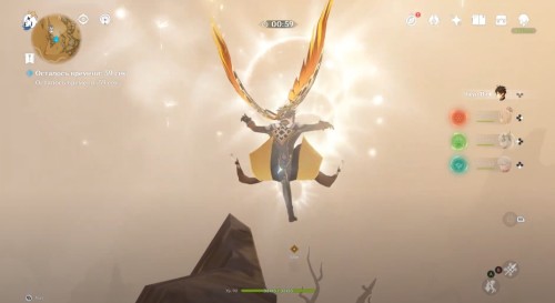 Итак, ваша основная цель – открыть сундук за 100 секунд. Для этого необходимо будет пролететь через особый воздушный маршрут. Первым делом притянитесь к четырехлистному символу, а затем начните лететь через ускоряющие ветряные кольца. Ни в коем случае не убирайте свой планер, иначе вы потеряете высоту и не сможете дотянуться до кругов.