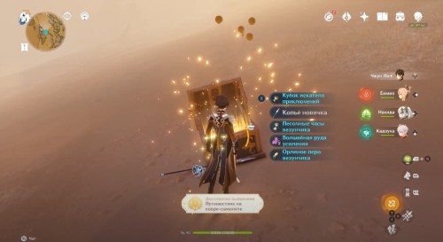 Как только вы сделаете это, вам будет выдан трофей «Путешествие на ковре-самолете» из категории «Чудеса света», за который дают 5 примогемов. Отметим, что еще 10 камней истока вы получите за открытие сундучка.