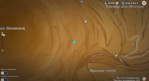 Взяв духа, поверните камеру на восток, и вы обнаружите на противоположном утесе столб света. Спланируйте к нему, а затем бегите в сторону песков аль-Азифа к следующей контрольной точке.