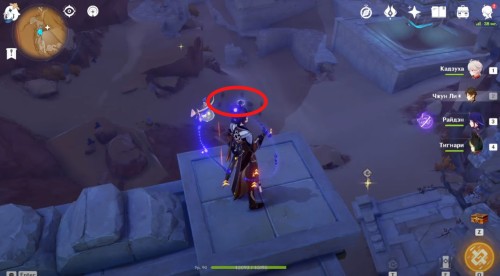 Теперь можете открыть богатый сундук, стоящий на камне. Внутри него вы найдете 5 примогемов, немного моры, очки приключений, символы Дендро и другие полезные предметы.