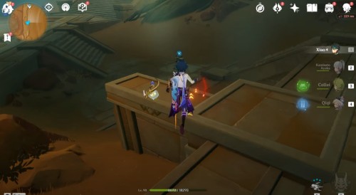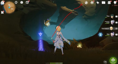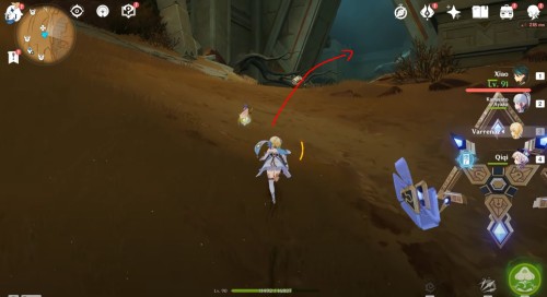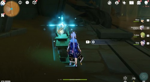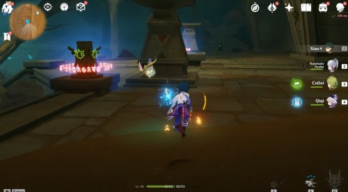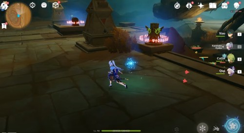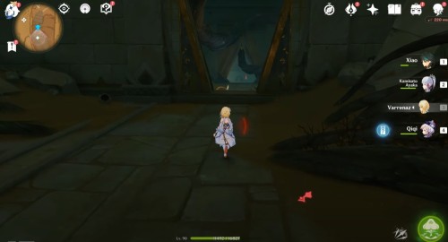 Спрыгните с края обрыва, развернитесь, и вы обнаружите заблокированный роскошный сундук в окружении Дендро монументов. Вам необходимо будет активировать все пять стихийных тотемов, три из которых установлены на стене, а два возле колонн (чтобы разблокировать их, необходимо довести до них первозданные искры).