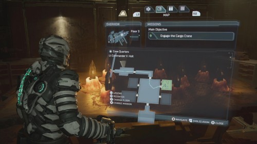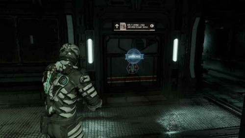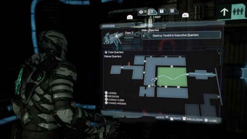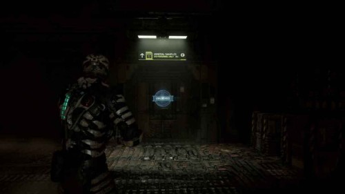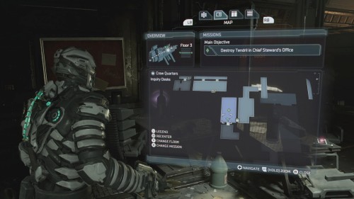 Как только вы это сделаете, вернитесь вниз на лифте и найдите на карте комнату с пометкой «Офис техобслуживания» (в правом нижнем углу отсека техобслуживания). Пройдите сюда, чтобы найти информационное табло.