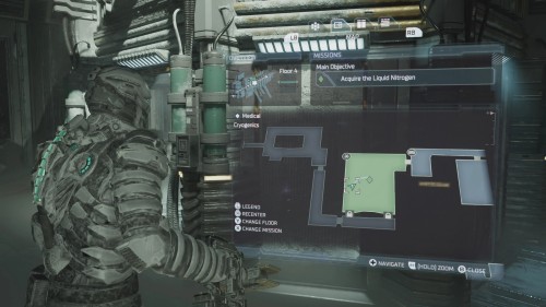Указанная цель приведет вас в локацию Криогеника (Cryogenics), где вы должны будете подобрать жидкий азот перед битвой с Охотником, которая заканчивается тем, что вы используете стазис на нем, а затем замораживаете его в большой криогенной камере.