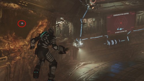 Встаньте лицом к экрану управления связью, а потом пройдите налево до упора. Вы увидите фрагмент в маленьком уголке внутри стены.