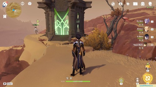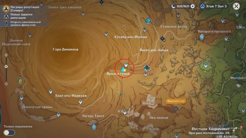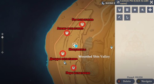 Доступ к данной локации вы сможете получить при прохождении мирового квеста «Храм, где пески текут, точно слезы». Потом можно будет вернуться сюда в любое время. Здесь вы обнаружите несколько заблокированных Дендро монументов. Чтобы активировать их, необходимо будет выбрать правильные символы на обелисках и сразиться с врагами. В отдельном руководстве указано, как попасть в эту область разгадать здешнюю загадку.