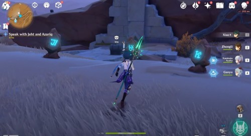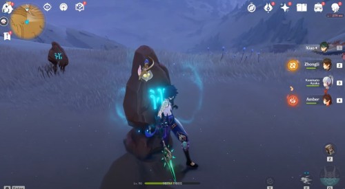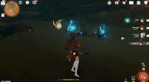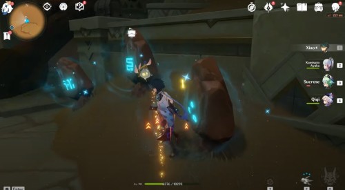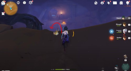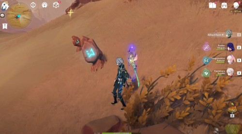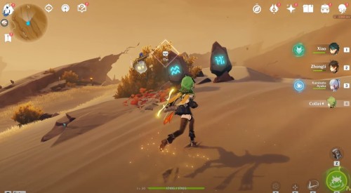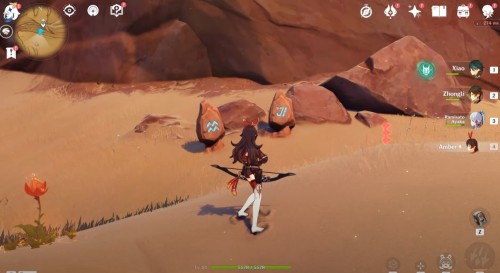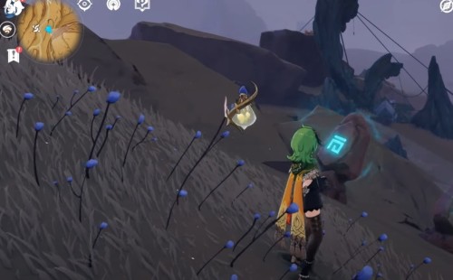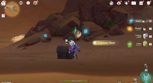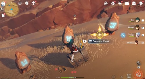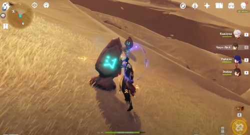 Отправляйтесь в отмеченную область. Здесь вы обнаружите заблокированный драгоценный сундук и несколько Дендро монументов – вам необходимо будет активировать их для получения содержимого сундучка. Чтобы разблокировать один из тотемов, нужно будет для начала разгадать небольшую загадку с обелисками.