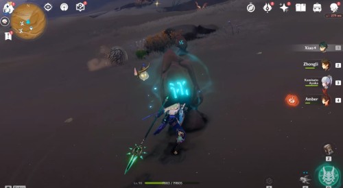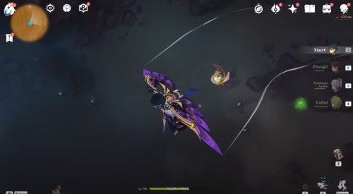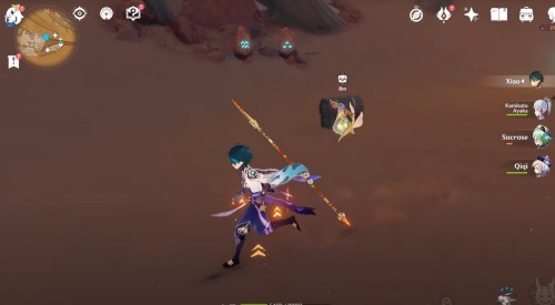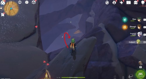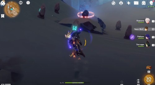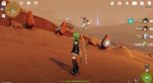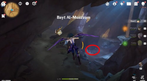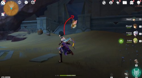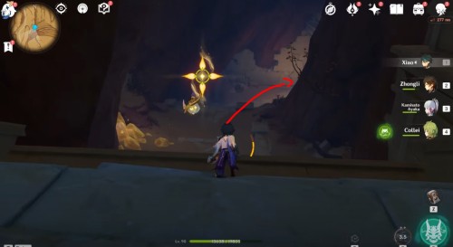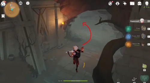 Отправляйтесь в показанное на карте ниже место. Тут вы обнаружите большой атмосферный вихрь, для рассеивания которого понадобится прокаченная Лилупар и 2 заряда Силы (рядом находится святилище джиннов).