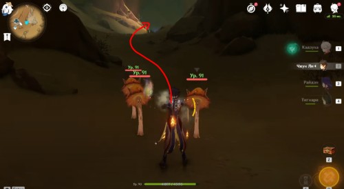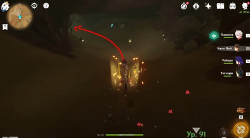 Начните подниматься наверх по тоннелю, а затем спуститесь вниз и на развилке сверните влево. Вы обнаружите здесь новый проход, заблокированный лианами, – активируйте Дендро тотем, стоящий рядом, дабы убрать лозы.