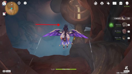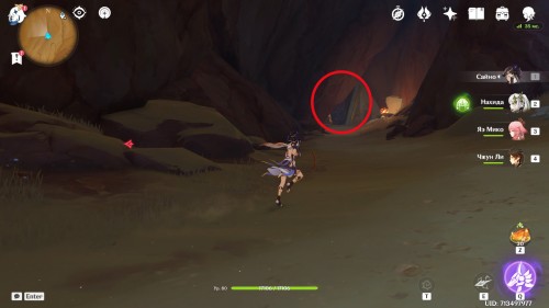 Данная точка доступна после прохождения «Изобилия под песчаными дюнами I». Переместитесь в Проход гулей, развернитесь точно на запад и спланируйте в ущелье, где вы уже были по сюжету. Продвигайтесь вдоль дороги до тех пор, пока она не выведет вас в пещеру с большими скалами и заброшенным лагерем разведчиков.
