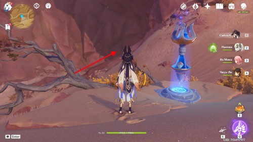 Последняя точка также становится доступна только по мере прохождения третьей части задания. Самостоятельно туда не попасть из-за песчаного барьера, но когда вы по сюжету окажитесь на платформе в центре бури, седьмой скрытый телепорт активируется автоматически.