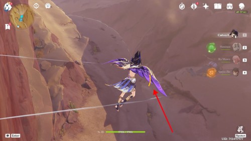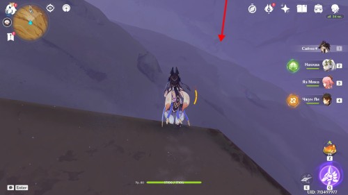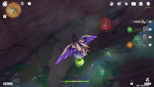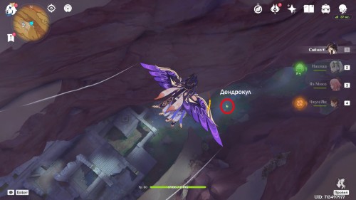 Продолжайте спускаться на планере, пока не окажетесь на одной вертикали с Дендрокулом. Когда вы спуститесь достаточно низко, получится разглядеть точку телепортации у основания скалы.