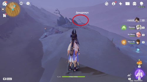 Переместитесь в начало маршрута и двигайтесь вдоль края скалы на север. Можете проложить свой путь через обведенное на скриншоте дерево, если вы еще не собрали Дендрокул под ним.