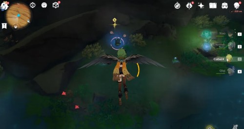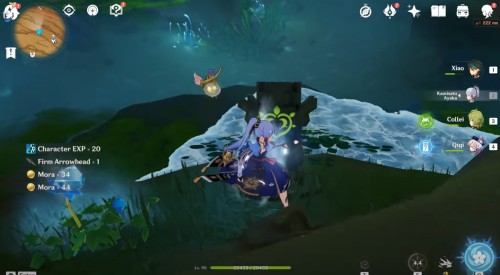 Спланируйте вниз и налево к заблокированному стихийному столбу, стоящему возле побережья. Его будут окружать хиличурлы и Крио маг Бездны. Используйте против последнего Пиро и Электро атаки, чтобы быстренько разрушить его щит.