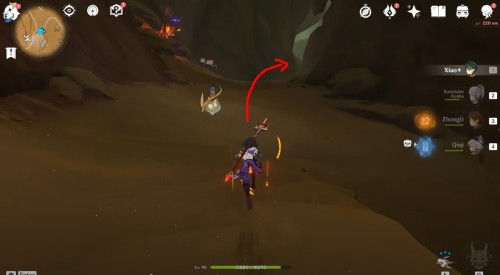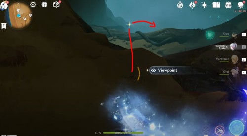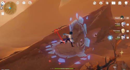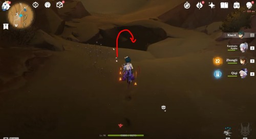 Итак, первым делом переместитесь к подземному телепорту, показанному на карте ниже, а затем бегите вперед и пройдите мимо первозданного обелиска и лагеря Фатуи с левой стороны.