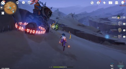 Переместитесь к восточному телепорту указанной области, а затем бегите на северо-восток и заберитесь на утес. Здесь вы обнаружите заблокированный Анемо тотем, вокруг которого стоят три обветшавших камня.