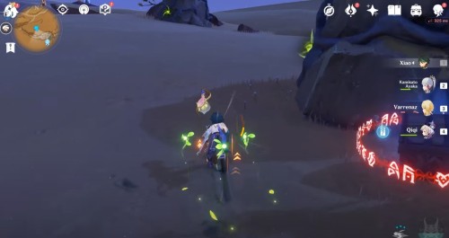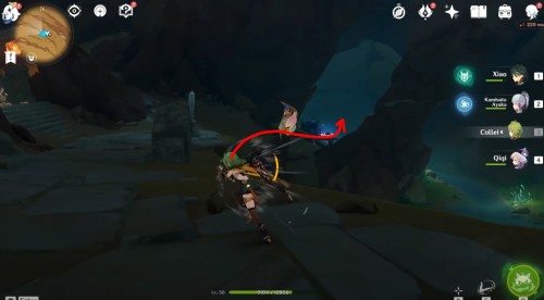 Поднимитесь на утес в показанной на карте области. Здесь вы обнаружите три камня с зеленой сферой в центре. Вам необходимо будет разрушить их с помощью дендрогранума и заряженных атак, чтобы найти находящиеся за ними Дендро тотемы. Расположение булыжников продемонстрировано на картинках ниже.