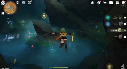 Спрыгните с выступа с водопадом, и вы окажитесь в просторной пещере с водоемом. Впереди вы должны будете увидеть парочку заблокированных Дендро тотемов. Всего вам нужно будет активировать три монумента для получения награды. В отдельном материале мы рассказали, как это сделать.