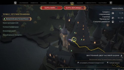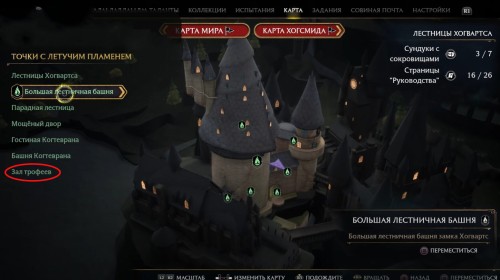 Всего секретов три. Для их раскрытия вам понадобятся определенные заклинания, поэтому решить эти пазлы сразу же после поступления в учебное заведение не получится. Глянуть же на них можно в основном меню во вкладке «Испытания».