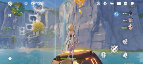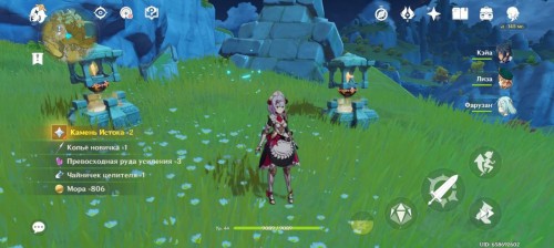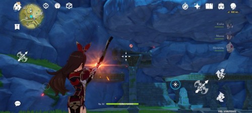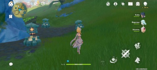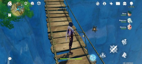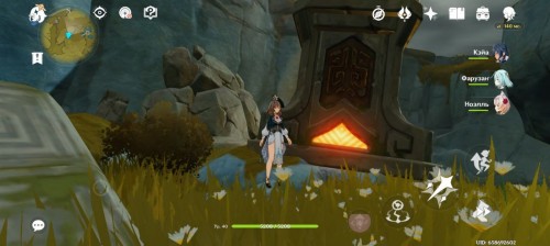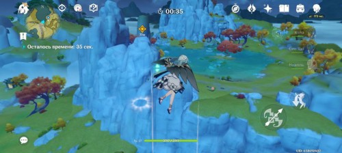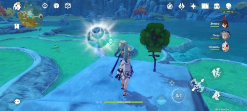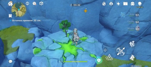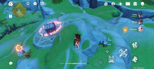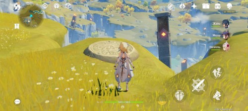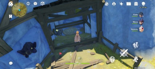 Теперь возьмите в отряд Анемо героя и прикоснитесь ко второй плите. Вам предстоит за минуту добраться до нужного места. Вам помогут мельничные механизмы, которые активируются с помощью Анемо и создают ветряные потоки.