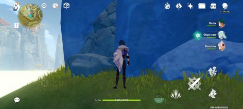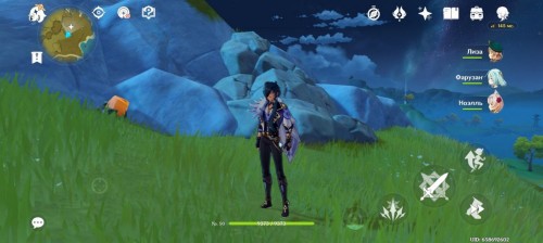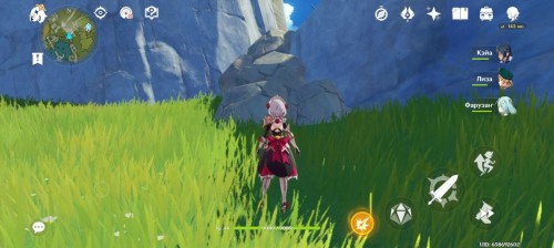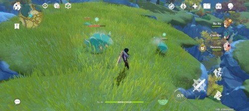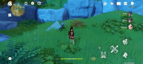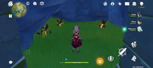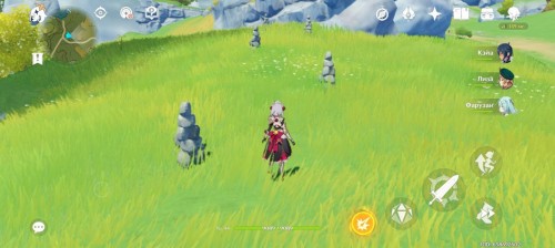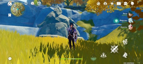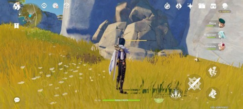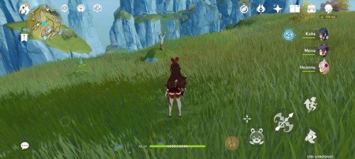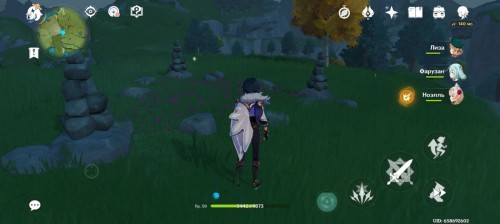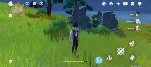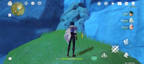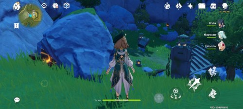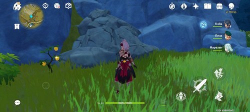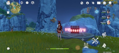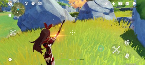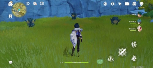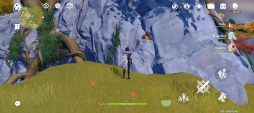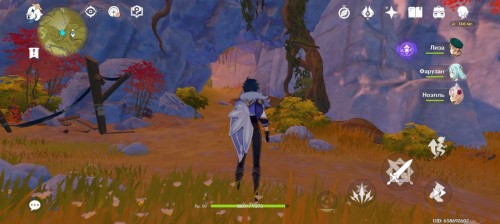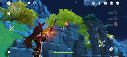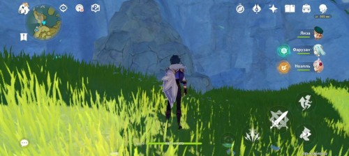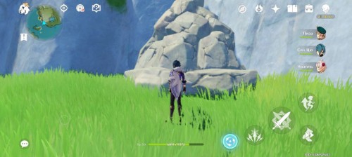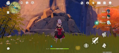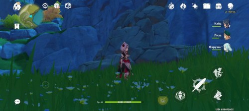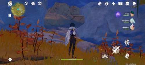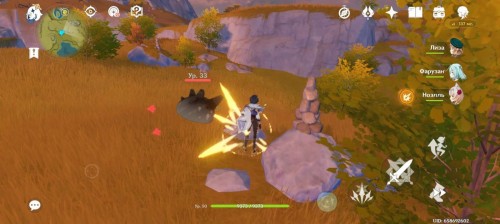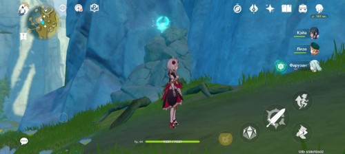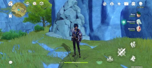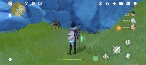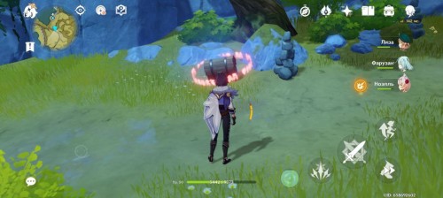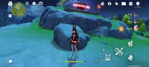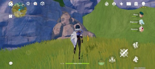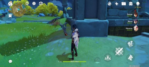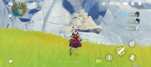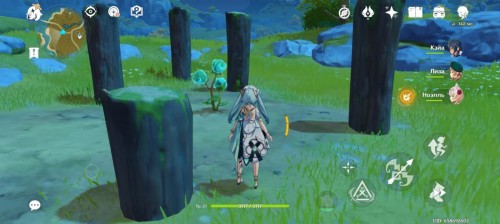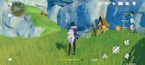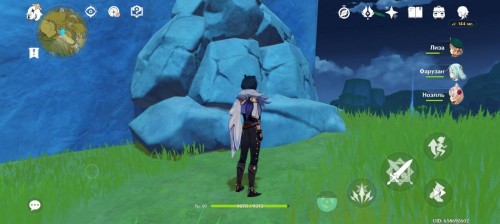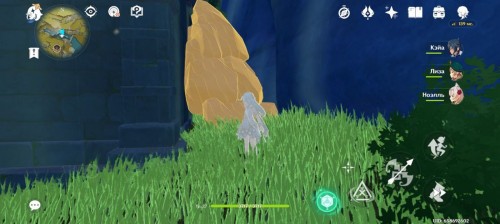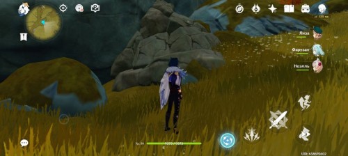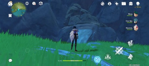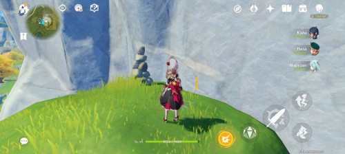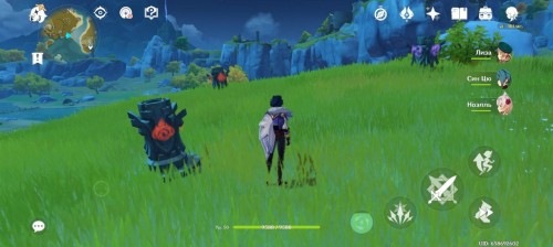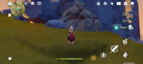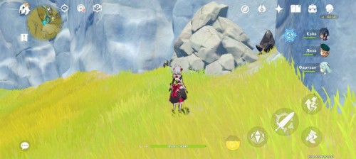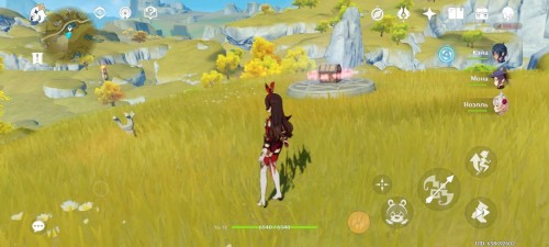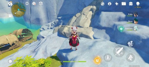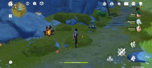 От южного телепорта летите на северо-восток, к лагерю хиличурлов. Один из монстров стоит прямо у камней.