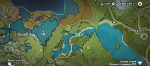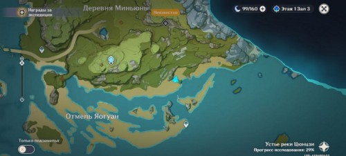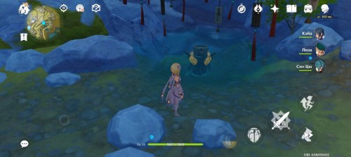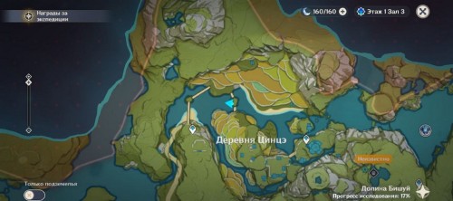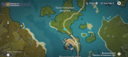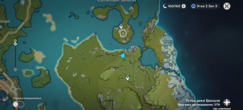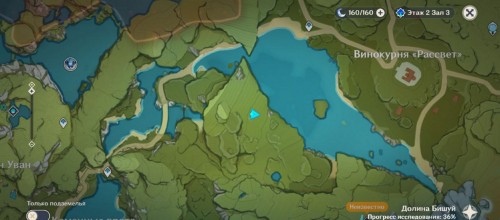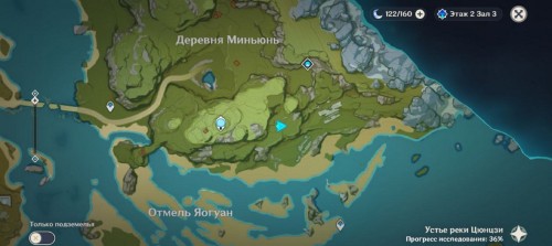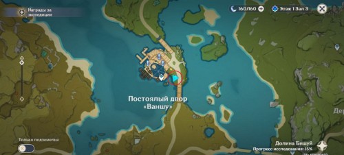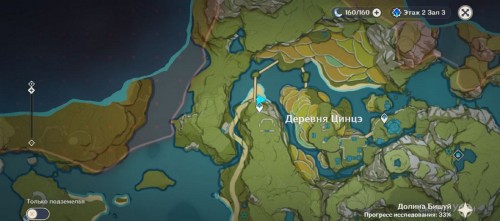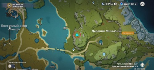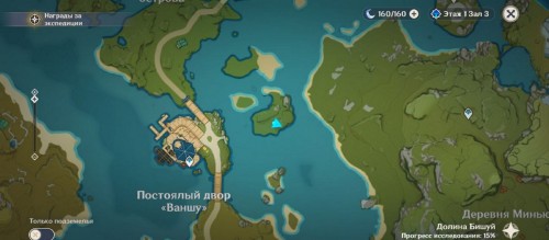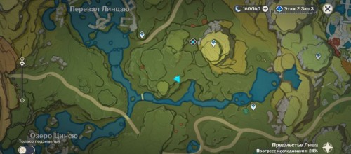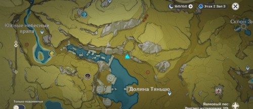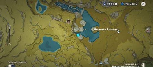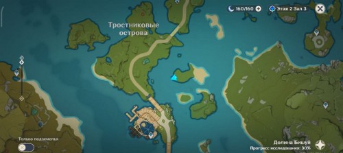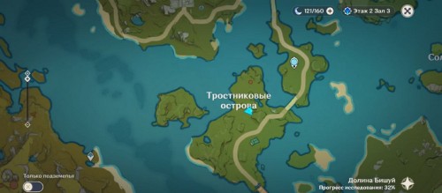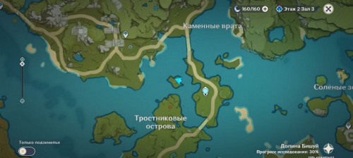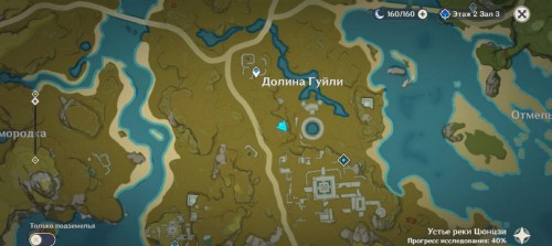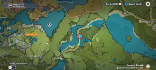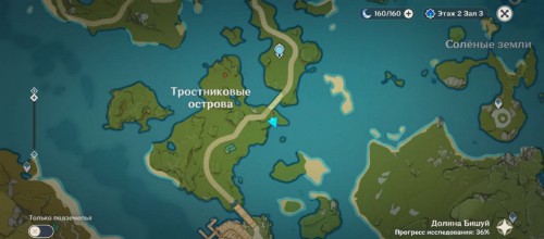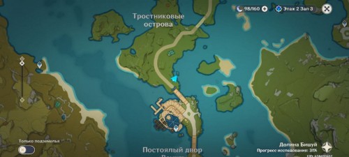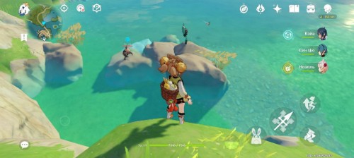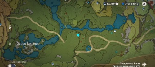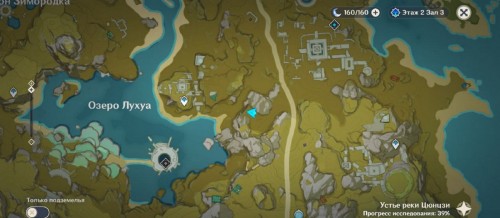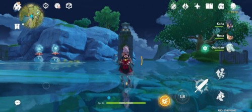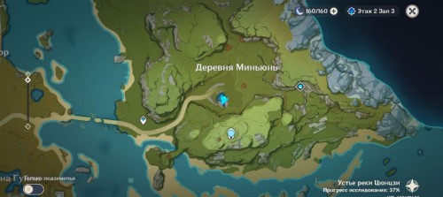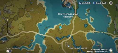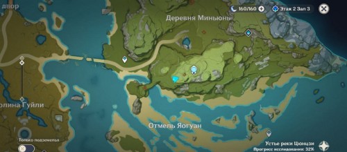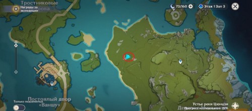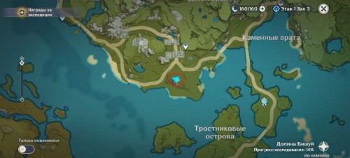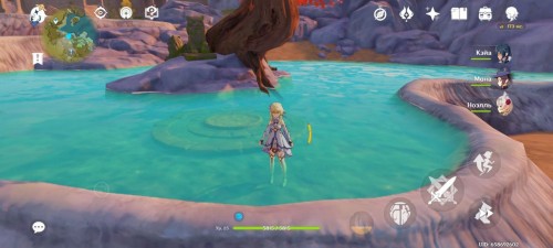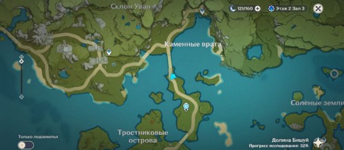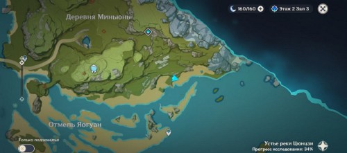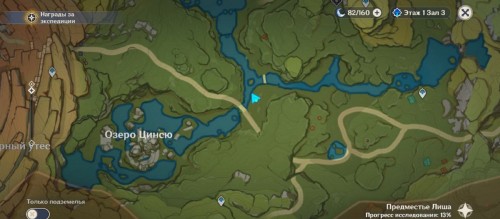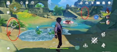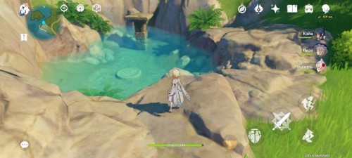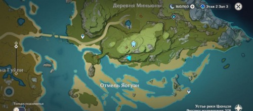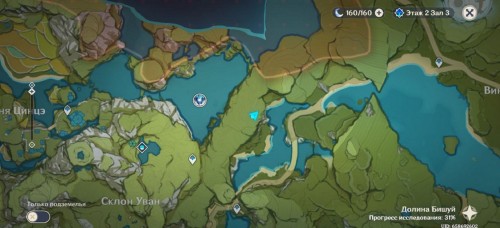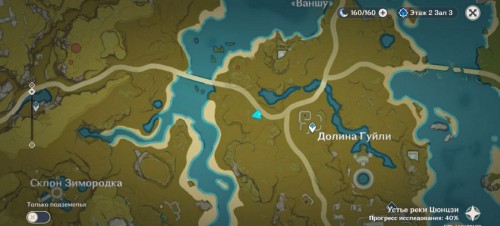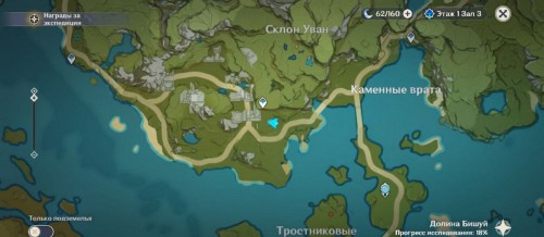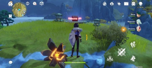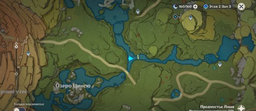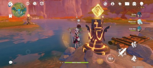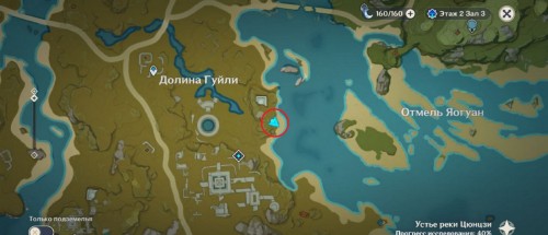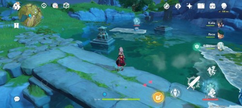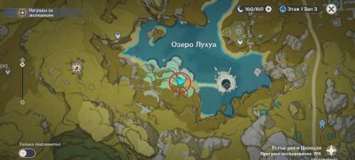 От телепорта направляйтесь на юго-запад, к воде и лагерю хиличурлов.