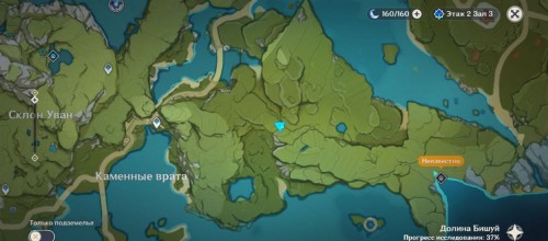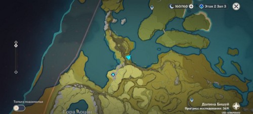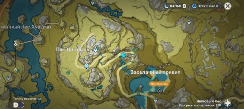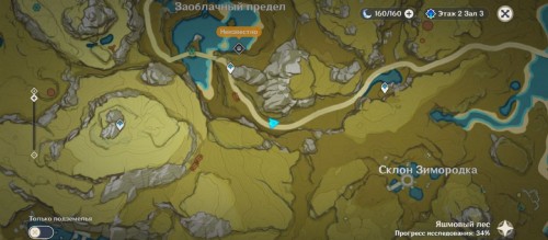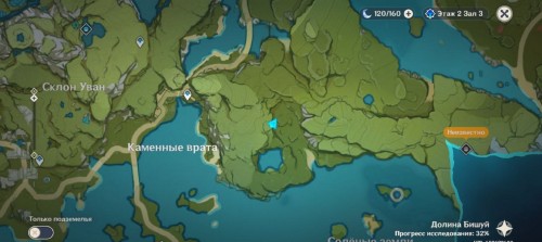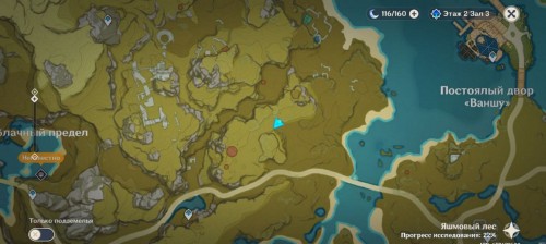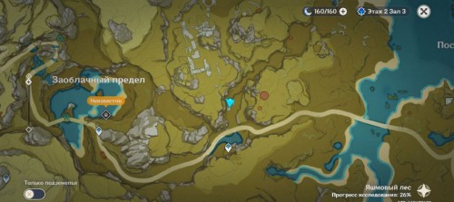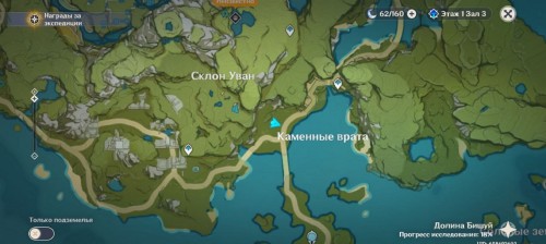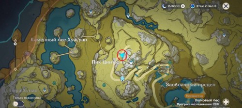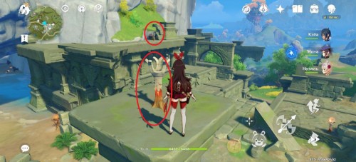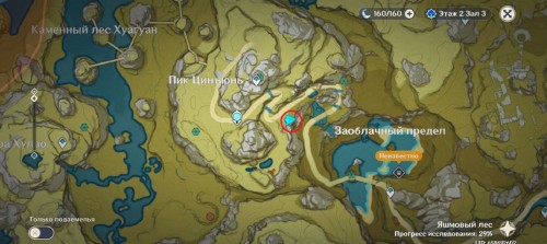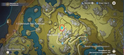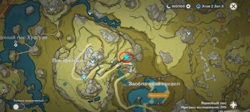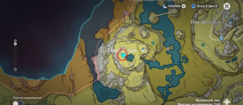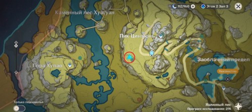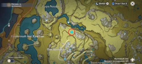 От телепорта пройдите на север. Пройдя мимо загадки с Гео монументами, поднимитесь на гору.