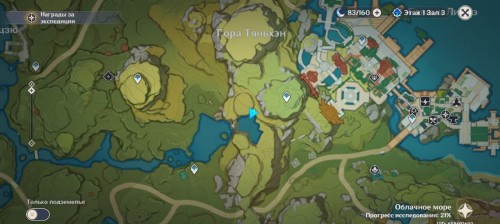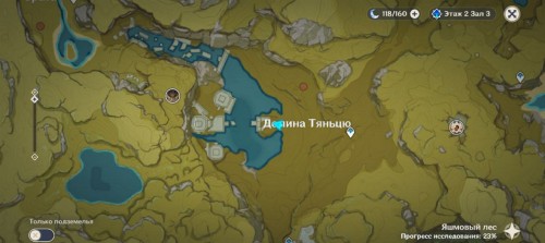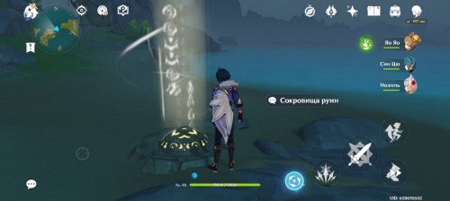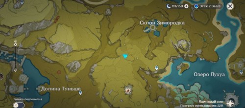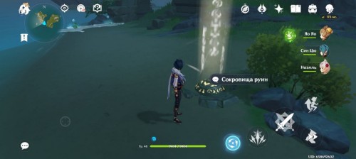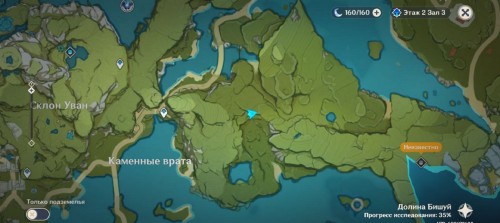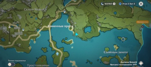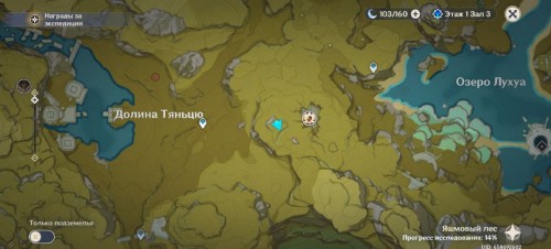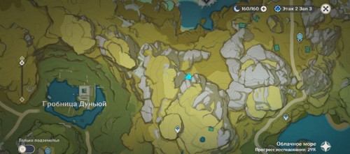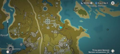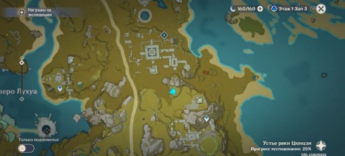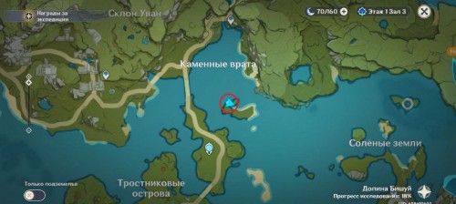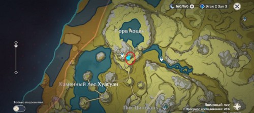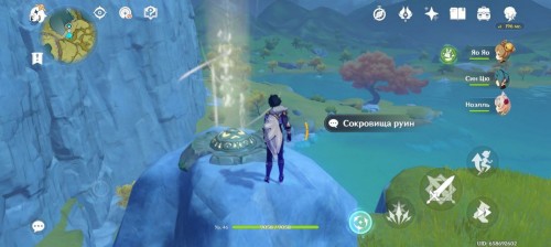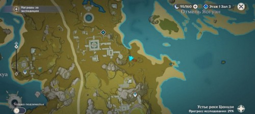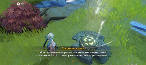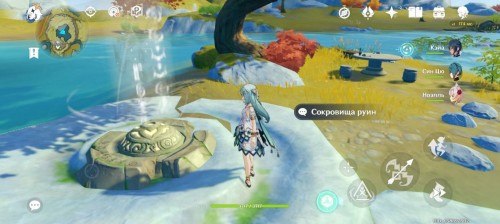 Сперва телепортируйтесь к подземелью «Чистая вода и горная пещера» и поднимитесь на восток. Здесь взаимодействуйте с плитой «Сокровища руин» и прикоснитесь к ней.