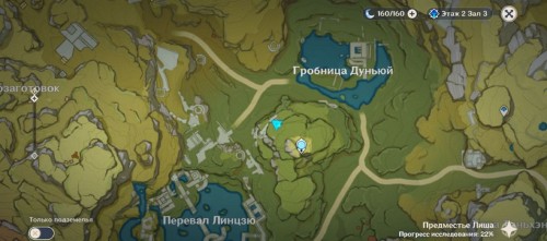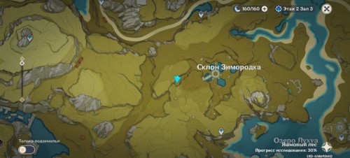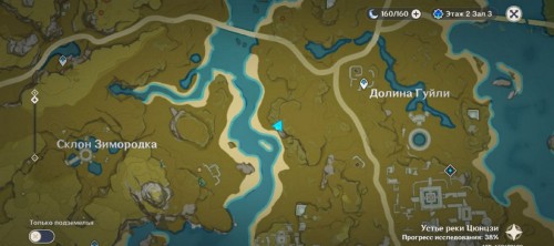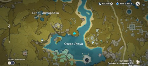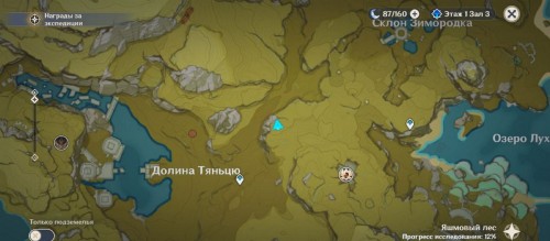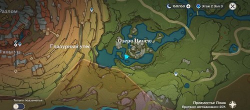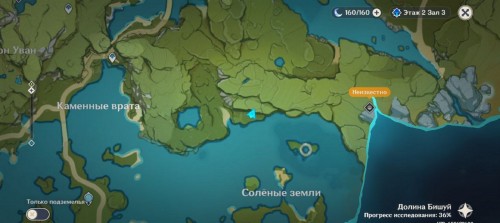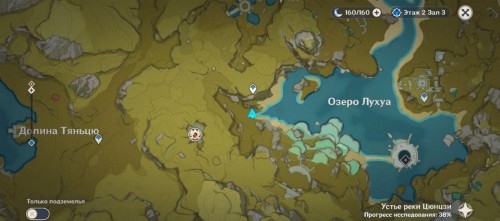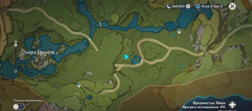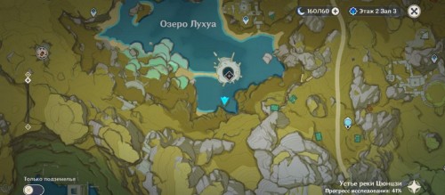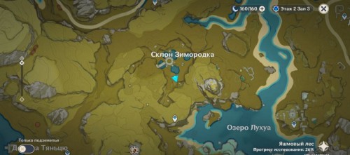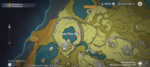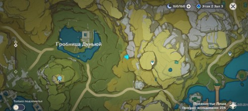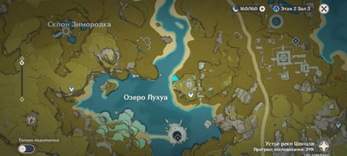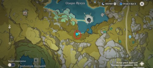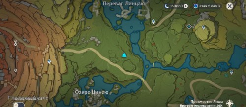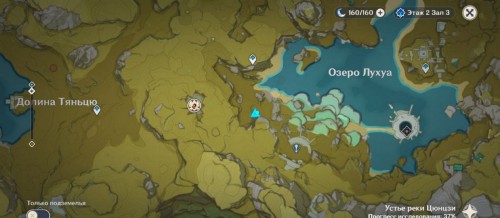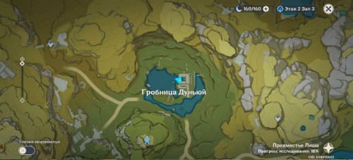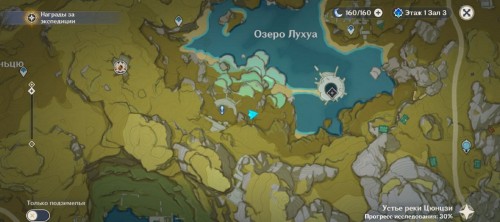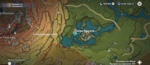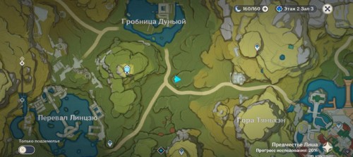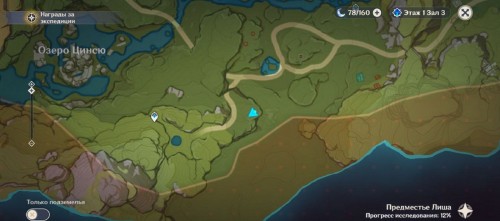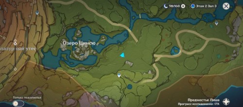 Загадка расположена в юго-западной части озера. Одна из 2 геогран окружена хиличурлами, вторая находится под горой.