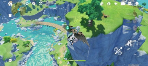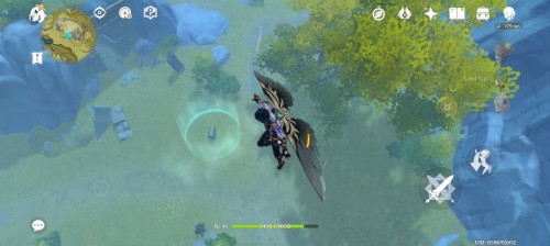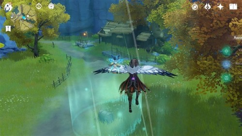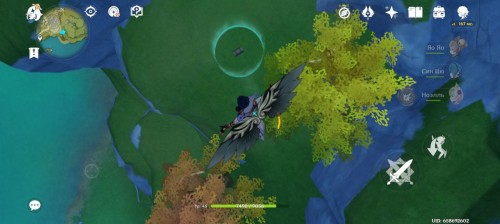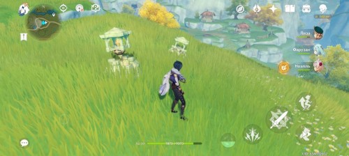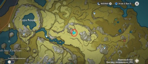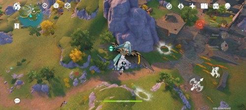 От телепорта летите на юг – здесь вы увидите навес хиличурлов, стоящий у небольшой скалы. На этой скале находится мельничный механизм, активирующий ветряной поток. Не поднимайтесь слишком высоко – вам необходимо попасть в ветряные кольца и быстро долететь до сокровища.