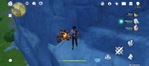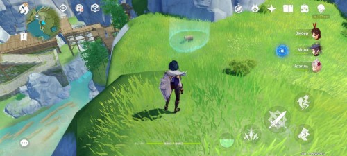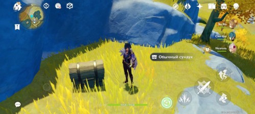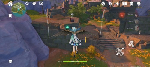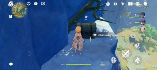 От телепорта поднимитесь на скалу на западе и воздействуйте Анемо на мельничный механизм. Поднимитесь на появившемся ветряном потоке и летите к сундуку – игра сама покажет вам его расположение. Сокровище довольно быстро исчезает, поэтому не задерживайтесь в воздухе.