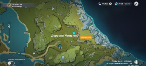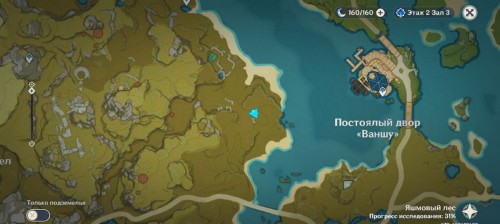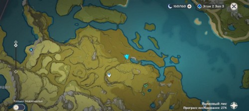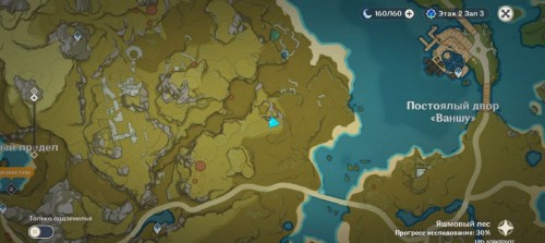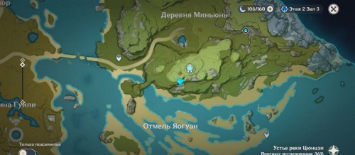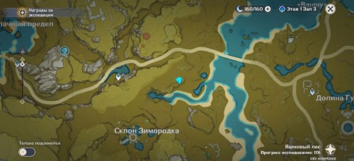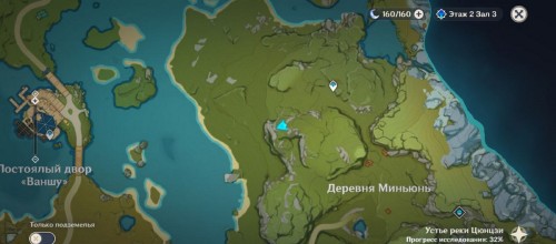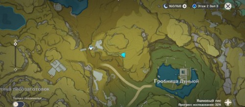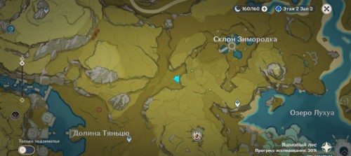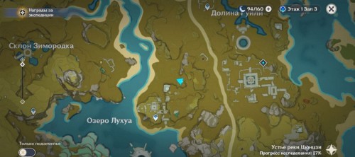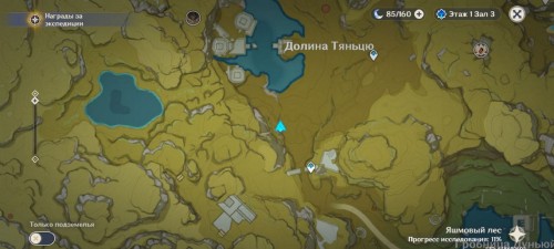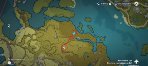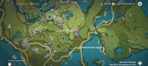 Плита находится немного южнее телепорта. Сундук появится под деревянными строениями, там же вас будет ждать хиличурл со щитом.