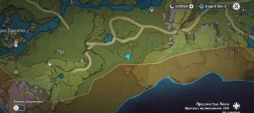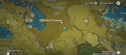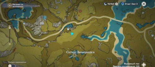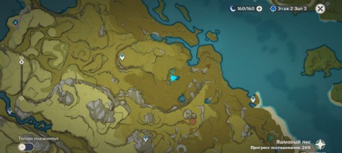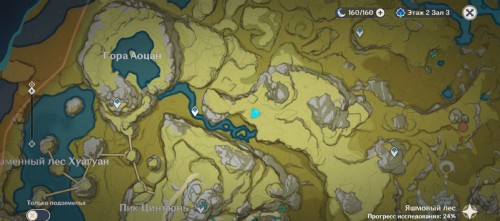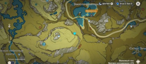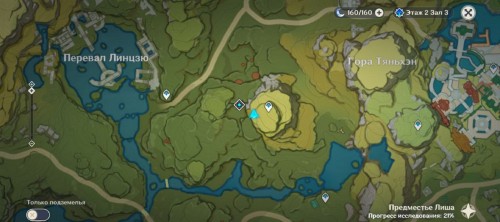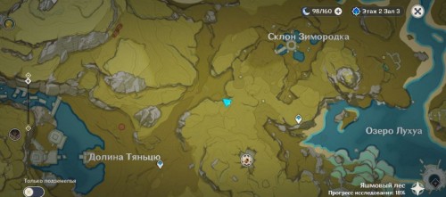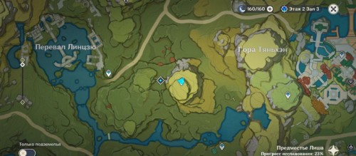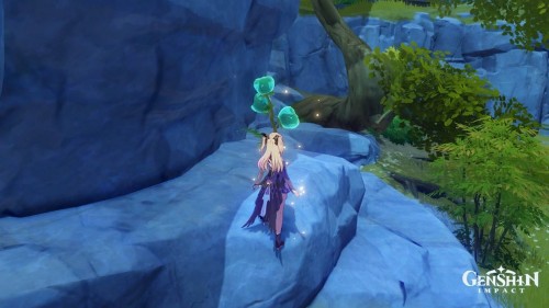Вдоль тропинки, ведущей на гору, стоят несколько больших янтарей. В любом из них вам могут попасться слаймы, хиличурлы, кристальные бабочки и прочие существа, а могут и обычные сундуки. Сокровища могут попасться не сразу – не расстраивайтесь и возвращайтесь на следующий день, когда янтари восстановятся.